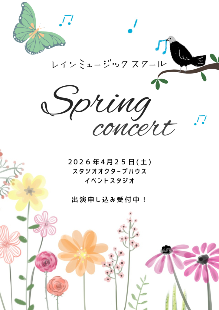 今回は、ポピュラー&ミュージカルボーカルコースの生徒さん+ヴァイオリンの生徒さんが出演!(ピアノ他全楽器参加OKです)